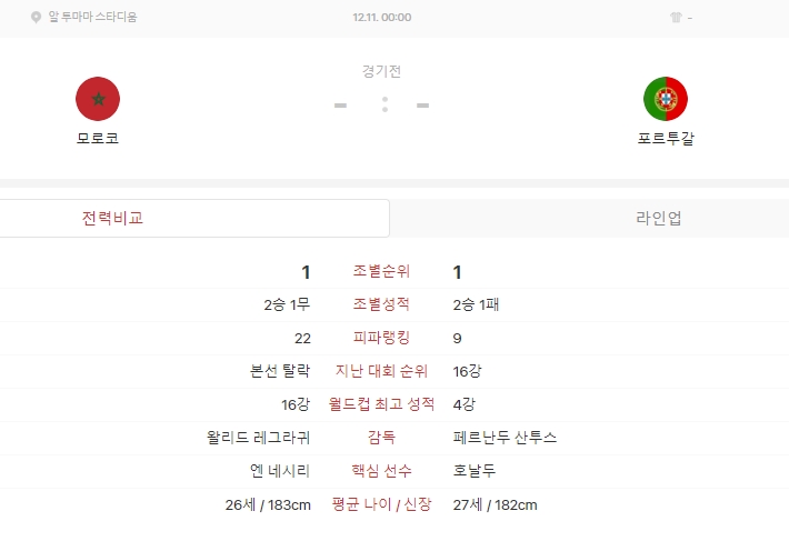 - 경기시간 : 2022년 12월 11일 오전 0시